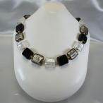 ネックレス ベネチアングラス イタリア製 角 46cm 糸結び 黒・グレー ベネチアンガラス