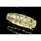 【1点物】AA☆繊細彫刻 リビアングラス 30x11mm 三眼天珠(通し穴) ビーズ _PD376