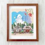 はり たつお 風景画 はり たつお 京都伊根の舟屋と桜 美工社 36.5×44×2.5cm 額装品