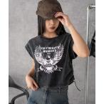 tシャツ WEGO/グラフィックノースリーブサイドドロストショートT レディース