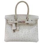 エルメス HERMES バーキン30 B刻印 グリスパール シルバー金具 オーストリッチ ハンドバッグ レディース 中古