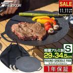 ヤフー1位 ラウンドグリドルパン Sサイズ 丸型 29cm×34.5cm FIELDOOR 直火 ガス IH対応 軽量アルミ合金 グリルパン マルチグリドルパン 送料無料