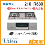 大阪ガス 210-R680 ビルトインガスコンロ Udea(ユーディア) 幅60cm ガラストップ ミストベージュ 強火力左 [ココットプレート付属]