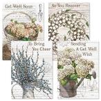 Farmhouse Get Well グリーティングカード - 8枚セット (4デザイン) Lサイズ 5インチ x 7インチ お悔やみカード 内側にメ