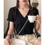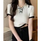 ニット セーター リブニット ラインイリえり付きプルオーバー レディース
