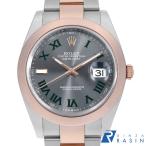ロレックス デイトジャスト41 126331 スレート (グレー) グリーンローマ 3列 オイスターブレス ランダム番 中古 メンズ 腕時計 007UROAU2088