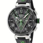 【3年保証】 ルイヴィトン タンブール クロノグラフ ダミエ・グラフィット レース QA130Z ブラックPVD グリーン 自動巻き メンズ 腕時計