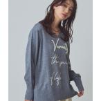 ニット セーター 筆記体刺?ロゴVネックチュニック レディース