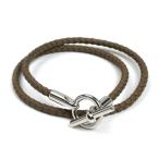 HERMES エルメス メタル レザー グレナン ドゥブルトゥール エトゥープ ブレスレット H071689FP18 レディース 中古 美品