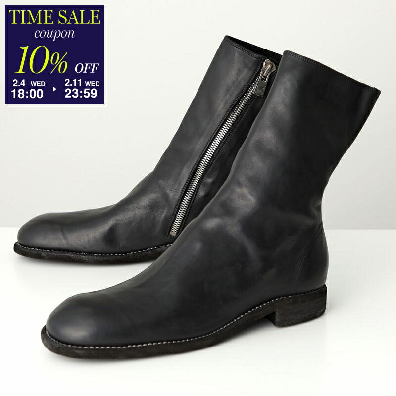 【10%OFFクーポン対象・12/26-9時59分迄】GUIDI グイディ サイドジップブーツ 698 メンズ ホースレザー フルグレイン ハーフブーツ ミドル Vibram ビブラムソール シューズ 靴 BLKT【cp_ten】