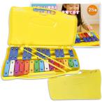 鉄琴 グロッケン メタロフォン 子供用 打楽器 25音 マレット ケース付き カラフル 知育 おもちゃ プレゼント (イエロー)