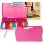 鉄琴 グロッケン メタロフォン 子供用 打楽器 25音 マレット ケース付き カラフル 知育 おもちゃ プレゼント (ピンク)
