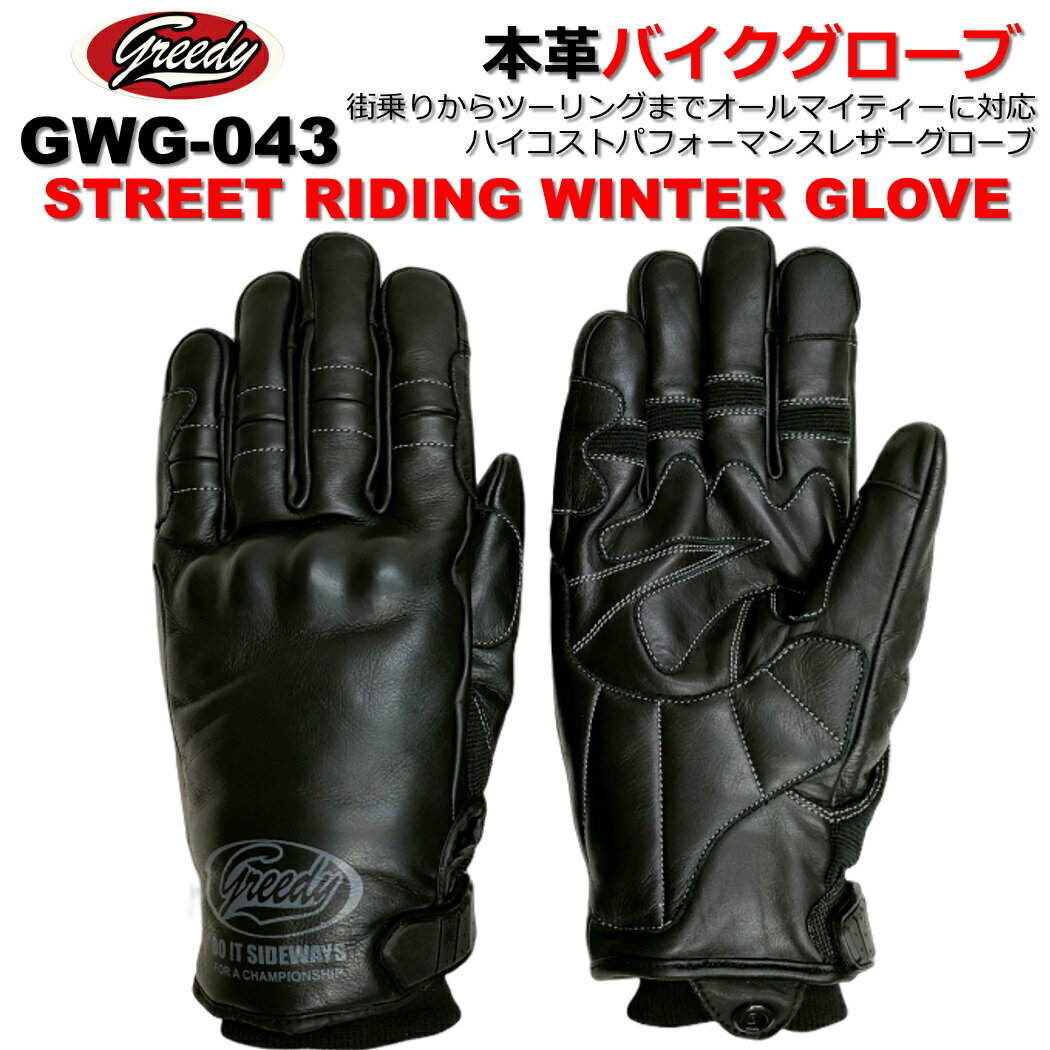 ★10%OFF 7,480円→6,732円★グリーディー GREEDY GWG-043 STREET RIDING WINTER GLOVE ウインターグローブ レザーグローブ バイク グローブ ツーリンググローブ ストリートスタイル ウインターグローブ 牛革