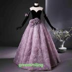 カラードレス ピンクパープル ベアトップ フラワー グローブ ハートカット ウェディングドレス 二次会 演奏会 発表会 ロングドレス 結婚式 ステージドレス