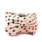■美品■ kate spade ケイトスペード キャンバス×レザー リボン ドット クラッチバッグ セカンドバッグ ピンク系×ブラック系 DF2596