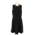 ケイトスペード パール装飾クレープドレス フレアワンピース ひざ丈 ノースリーブ フリル ストレッチ 4 黒 ブラック NJMU8170