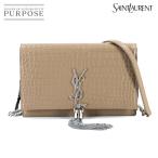 美品 サンローラン SAINT LAURENT ケイト チェーン ウォレット 二つ折り 長財布 クロコ型押し レザー ベージュ 152159 90312453