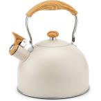 やかん 2.5L 笛吹きケットル ケトル 広口 ステンレス製 木目ハンドル 大容量 IH対応 オシャレ ベージュ