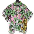 未使用 KENZO ケンゾー MEMENTO COLLECTION 2 バンブー×タイガー プリント コットンリネン 半袖 オープンカラー アロハシャツ 34 ピンク メンズ 古着 中古