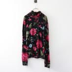 当時物 ケンゾー KENZO ビンテージ ストレッチレーヨン フラワープリント ハイネック長袖カットソー L ブラック/花柄【2400014444797】