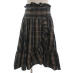 ケンゾー KENZO フリル ラップスカート チェック ひざ丈 ブラック ブラウン系 S ■ECT レディース