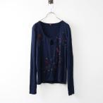 ケンゾー ジーンズ KENZO JEANS フラワー刺繍 ビーズ ブラウス L/ネイビー プルオーバー カットソー【2400014504477】