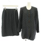 ケンゾー ワタナベ アトリエ セットアップ 上下 シャツジャケット 長袖 ロング タイトスカート ひざ丈 総柄 青 ブルー カーキ