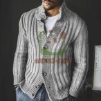 爆買 カーディガン メンズ ローケージ ニット アウター セーター カジュアル 保温 秋服 冬服 厚手 ボーダー シンプル 長袖