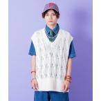 ベスト ジレ a.p.o.v. ケーブルニットオーバーサイズVネックベスト メンズ レディース