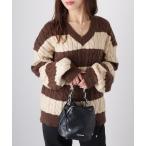 ニット セーター 2025秋冬新作 配色ボウタイケーブルニット レディース