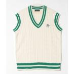「FRED PERRY」 ノースリーブニット M ベージュ メンズ