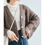 カーディガン パールボタンケーブルニットカーディガン レディース