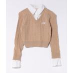 ニット セーター UNDOVE 多ボタン使い配色ニットプルオーバー (重ね着冬/ケーブルニット/セーター/UV/ストレッチ) レディース
