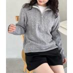 ニット セーター ハーフジップケーブル編みニットトップス レディース