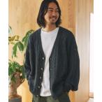 カーディガン 「Alfred Alex」ヴィンテージ加工 ピグメント ワンポイントロゴ刺繍 オーバーサイズ ケーブルニットカーディガン メンズ レディ