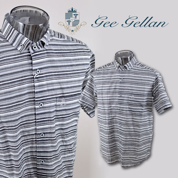 【 あす楽 送料無料 50%OFF 】 ゲラン 半袖シャツ メンズ M L LL 8210-1532[ GEE GELLAN ジーゲラン 半袖 シャツ グレー ボーダー 涼しい ボタンダウン 春夏 ギフト 大きいサイズ アウトレット 綿 日本製 セール プレゼント sale 夏 かっこいい ]