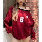 トレーナー スウェット ピンストライプワンショルダーゲームシャツトレーナー レディース