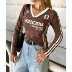 tシャツ ラインラグランゲームロンT レディース