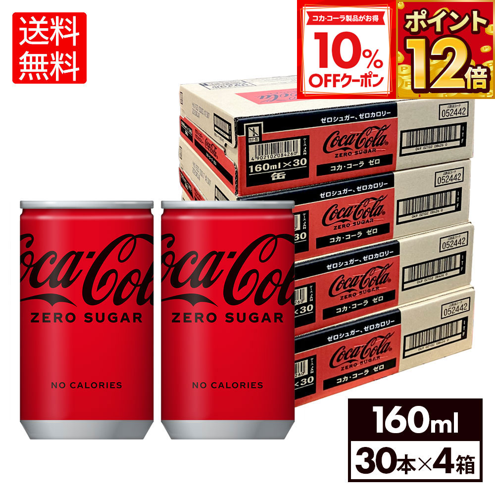 【10%OFFクーポン対象 12/11 23:59まで】コカ・コーラ ゼロ 160ml 缶 30本入り×4ケース【送料無料】