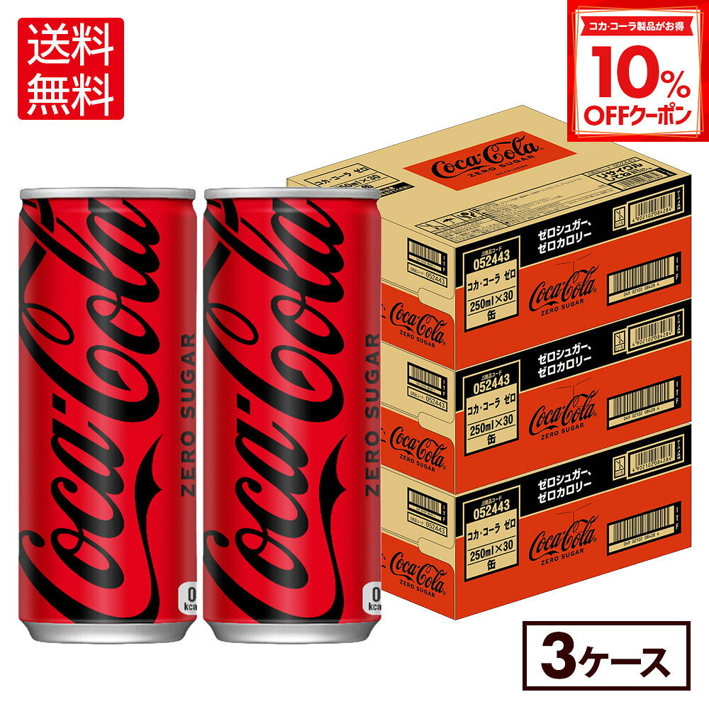 【10%OFFクーポン対象 12/11 23:59まで】コカ・コーラ ゼロ 250ml 缶 30本入り×3ケース【送料無料】