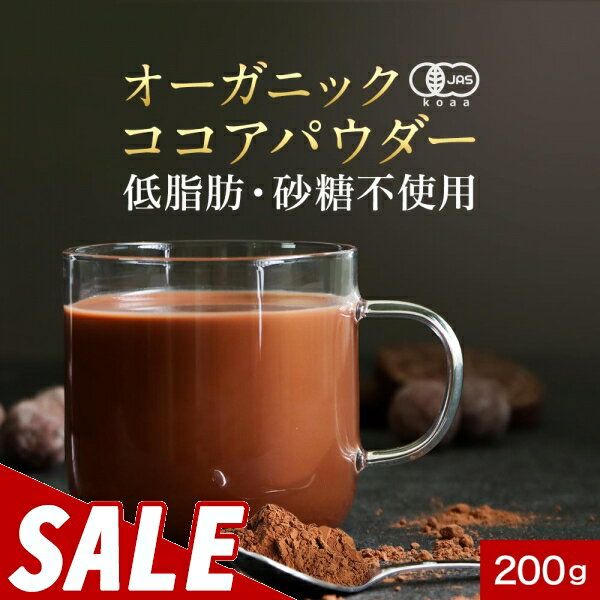 【LINE登録で5%OFFクーポン】 有機 ココアパウダー カカオパウダー 200g オーガニック有機 JAS 国内製造 保存料 無添加 カカオ ポリフェノール お菓子作り 純粋 ピュア 人気 おすすめ 有機JAS認証 砂糖不使用 低脂肪タイプ 送料無料