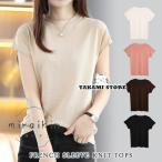 ニットトップス レディース 春 夏 春夏 黒 クルーネック サマーニット セーター フレンチスリーブ ココア色 ベージュ コーヒー ブラック 無地