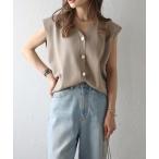 ベスト ジレ ゴールド釦ボクシーニットベスト レディース