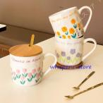 マグカップ 蓋付き おしゃれ シンプル コーヒーカップ コップ ティーカップ 可愛い カフェ風 花柄 大容量 陶器 バレンタイン クリスマス 400ml カフェ
