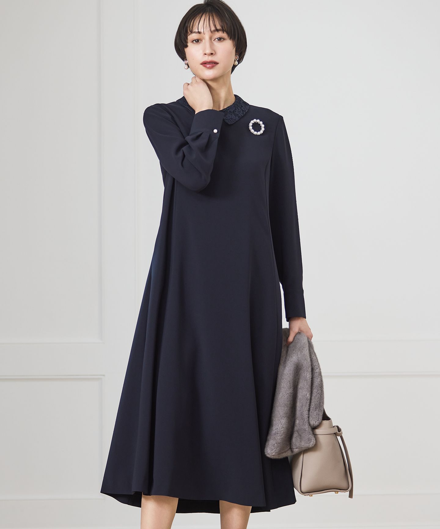 23区(ニジュウサンク)/【セットアップ対応/洗える】トリアセダブルジョーゼット 襟付き ワンピース