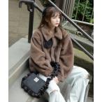 コート アウター tulle brooch fur coat / コサージュ付きファーコート レディース