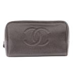 CHANEL シャネル ココマーク コスメポーチ A01996 ポーチ キャビアスキン 茶 レディース【H193024337】中古