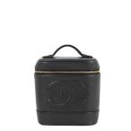 シャネル CHANEL ココマーク バニティバッグ メイク コスメ 化粧ポーチ キャビアスキン ブラック レディース 中古