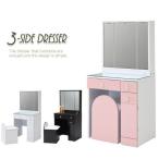 ドレッサー 化粧台 コスメ収納 鏡台 幅65 三面鏡 スツール 椅子付き 白 黒 ピンク おしゃれ コンセント付き 姫系 シンプル ホワイト家具 姿見
