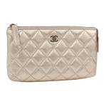 CHANEL マトラッセ コスメポーチ メタリック ココマーク ラムスキン ピンク A69259